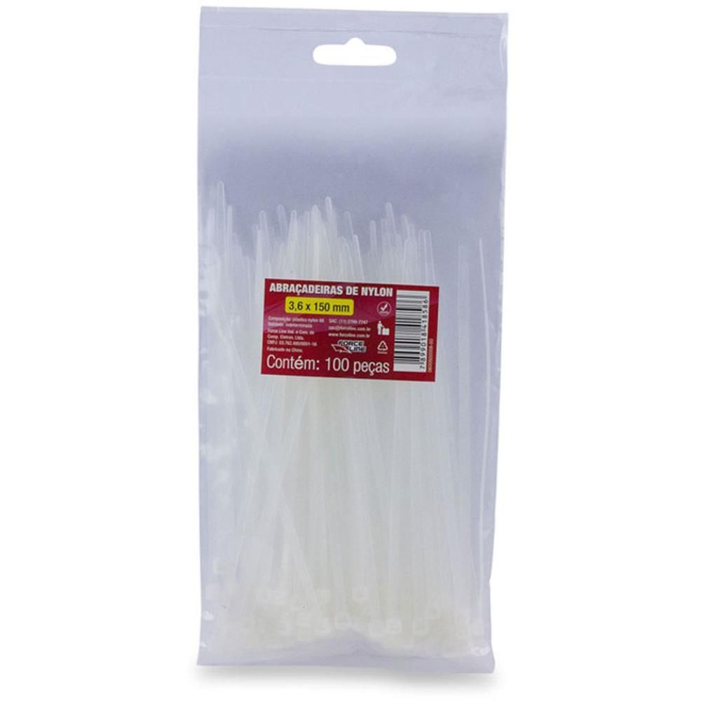 ABRACADEIRA DE NYLON 3,6MM X 150MM BRANCA 100 PCS