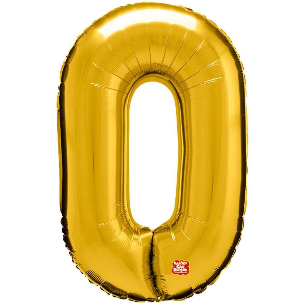 Balao Metalizado Numero 0 Dourado 100CM.