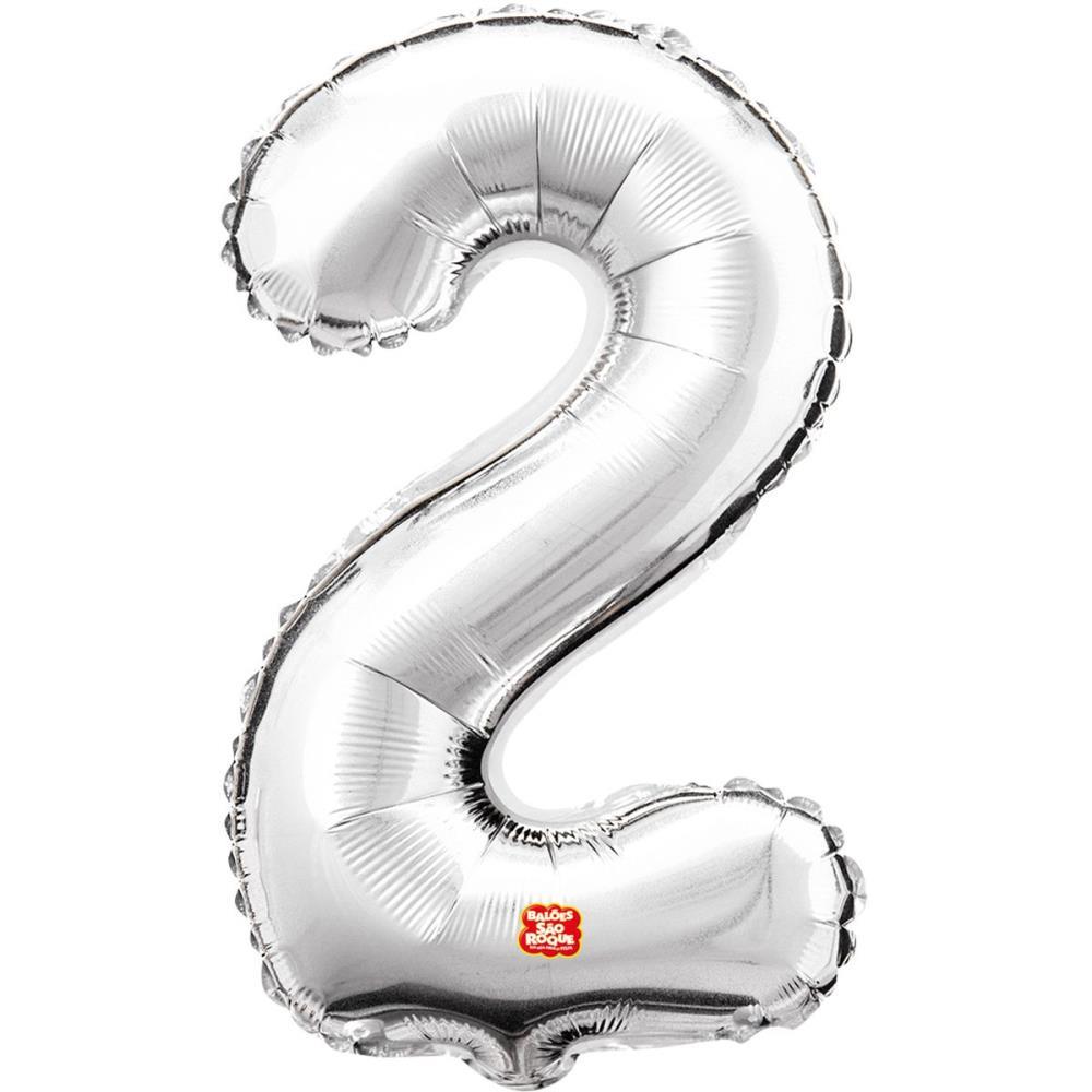 Balao Metalizado Numero 2 Prata 40CM.
