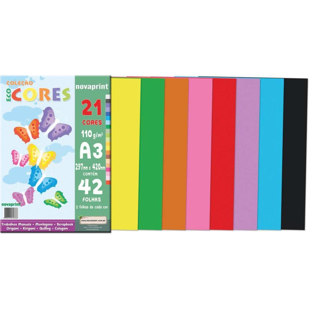 O Ecocores 21 cores A3 tem muito mais cores que os demais! Proporciona que a criança conheça uma cor e suas diferentes tonalidades e se expresse criativamente com elas. A criança se interessará muito mais pelo que está fazendo ao ter à sua disposição um universo de papéis coloridos, isto tornará uma atividade inesquecível e marcante! Possibilita trabalhar com as mais diferentes combinações cromáticas desenvolvendo assim o olhar e o fazer artístico.Ele tem a espessura ideal para manuseio infantil 110 g/m sem perder a firmeza. Formato A3 297mm x 420mm. Tamanho padrão que favorece ao ensino infantil e artesanato.Tem 2 folhas de cada cor totalizando 42. Produto aprovado por professores.