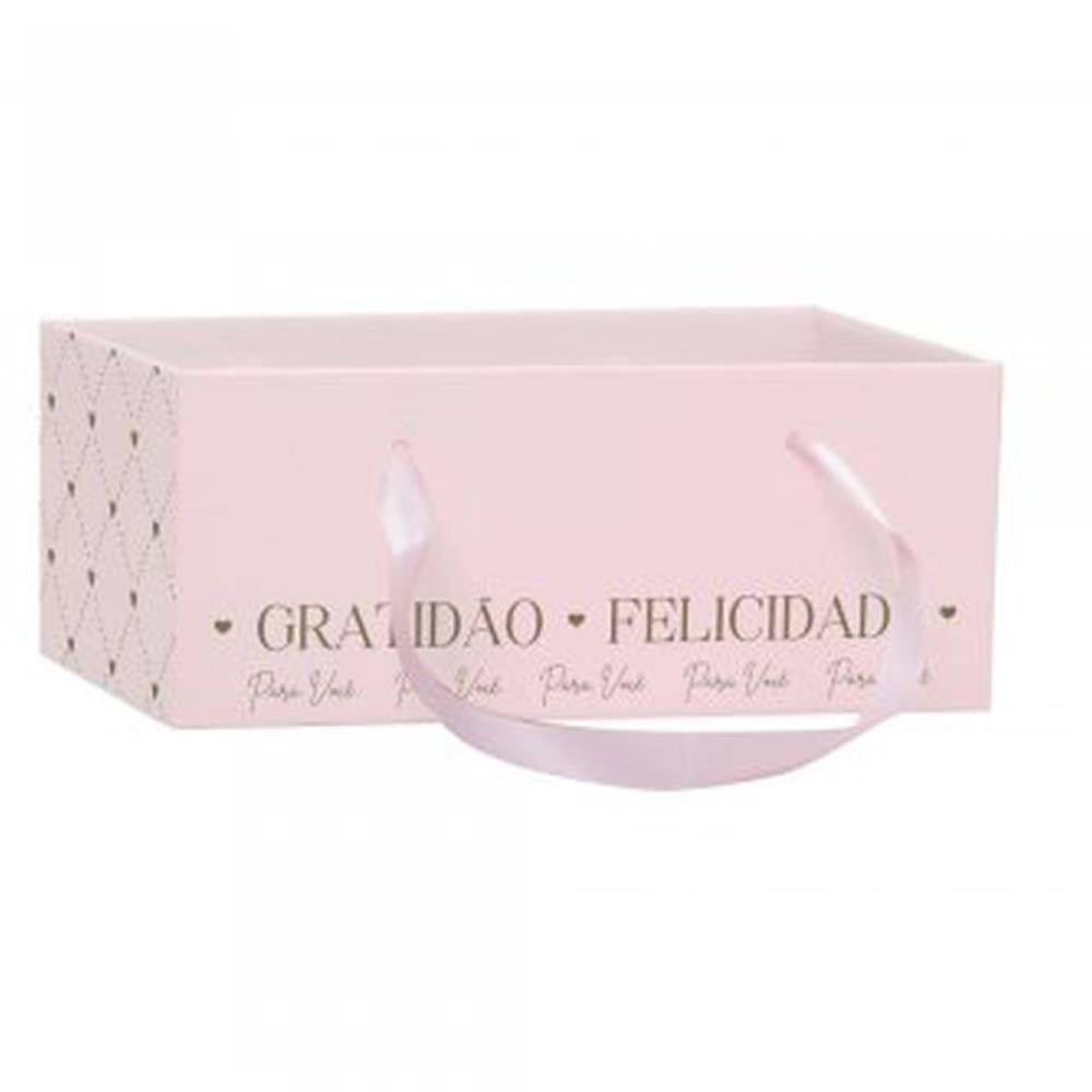 O Cachepot retangular Essencia Rosa Quartz e produzido em papelao resistente com alca em cetim, trazendo praticidade. E perfeito para floriculturas, lembrancas e decoracoes que buscam beleza e praticidade em um so produto.