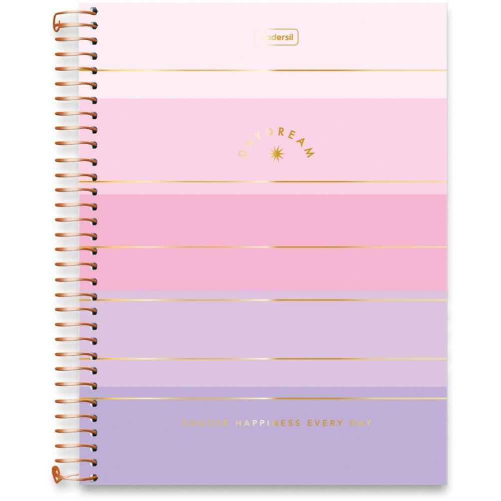 A linha DayDream e perfeita para quem ama sonhar acordado e se organizar! Com capas delicadas em listras e hot stamping dourado, o caderno universitario + planner une estilo e praticidade. Super completo, traz calendarios de 2 anos, planejamentos anual e mensal, folhas variadas e uma cartela de adesivos funcionais para deixar a rotina mais leve e divertida.