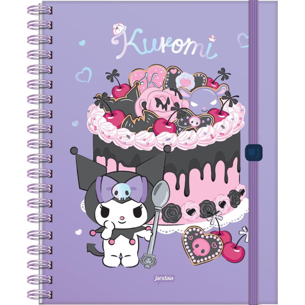 O Caderno Neo Universitario Kuromi e um lancamento que combina atitude e fofura na medida certa. Com capa em laminacao fosca, detalhes em hot stamping e fechamento com elastico, ele traz o universo irreverente da personagem Kuromi em artes cheias de personalidade e cores marcantes como lilas, rosa e preto. Conta com folhas reposicionaveis, divisorias tematicas, adesivos exclusivos, bolsa plastica, planner e pauta inteligente JandaIA — tudo pensado para garantir organizacao com estilo. Ideal para fas da personagem que buscam praticidade sem abrir mao do visual divertido e ousado.