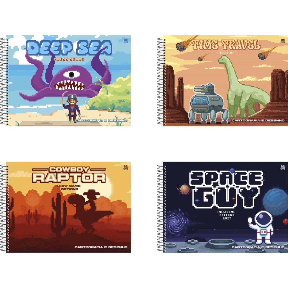 Caderno Desenho UNIV Capa Dura Pixel KRAFT 60F (17891321103606)