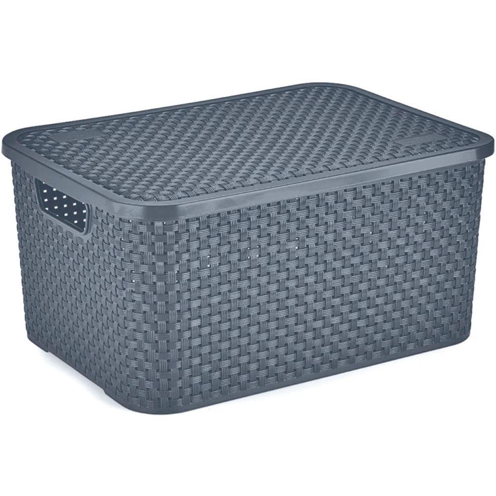 Caixa Plastica Multiuso Rattan com Tampa Chumbo G 16 L