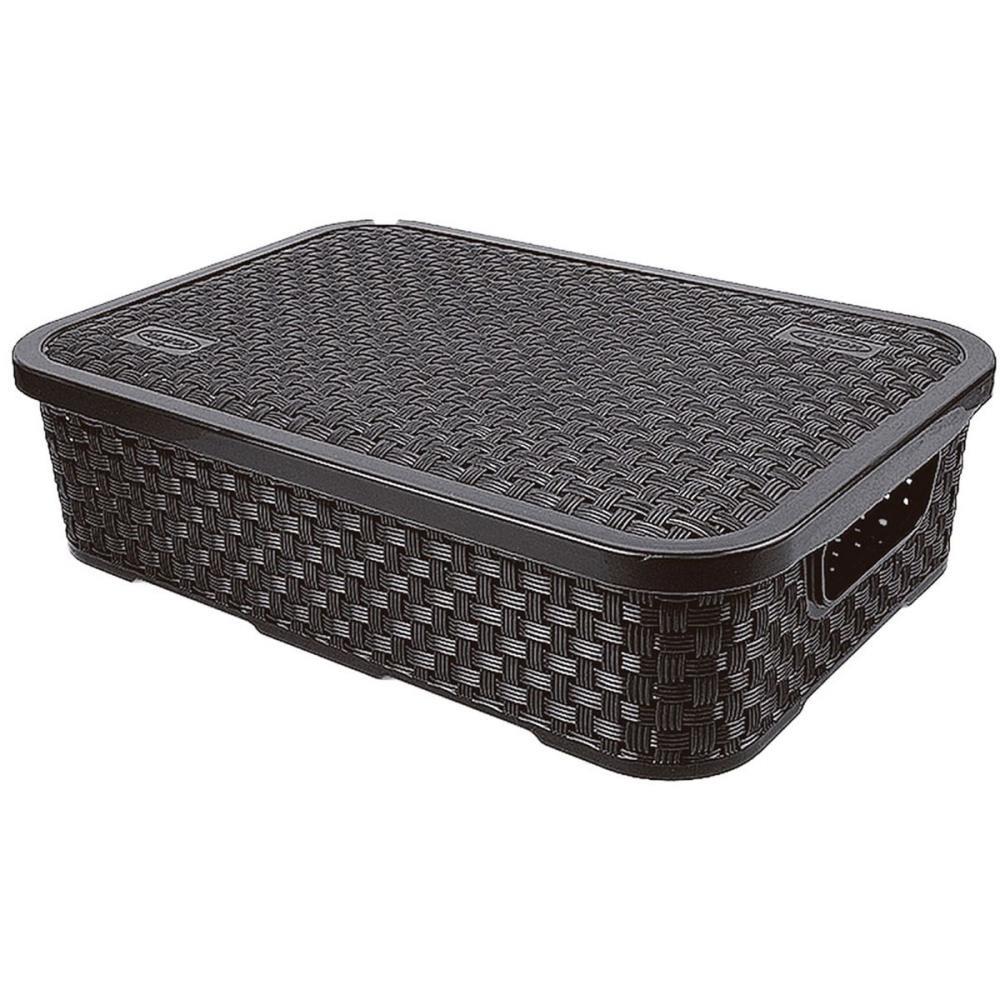 Caixa Plastica Multiuso Rattan C/TAMPA Baixa PT 3,2L