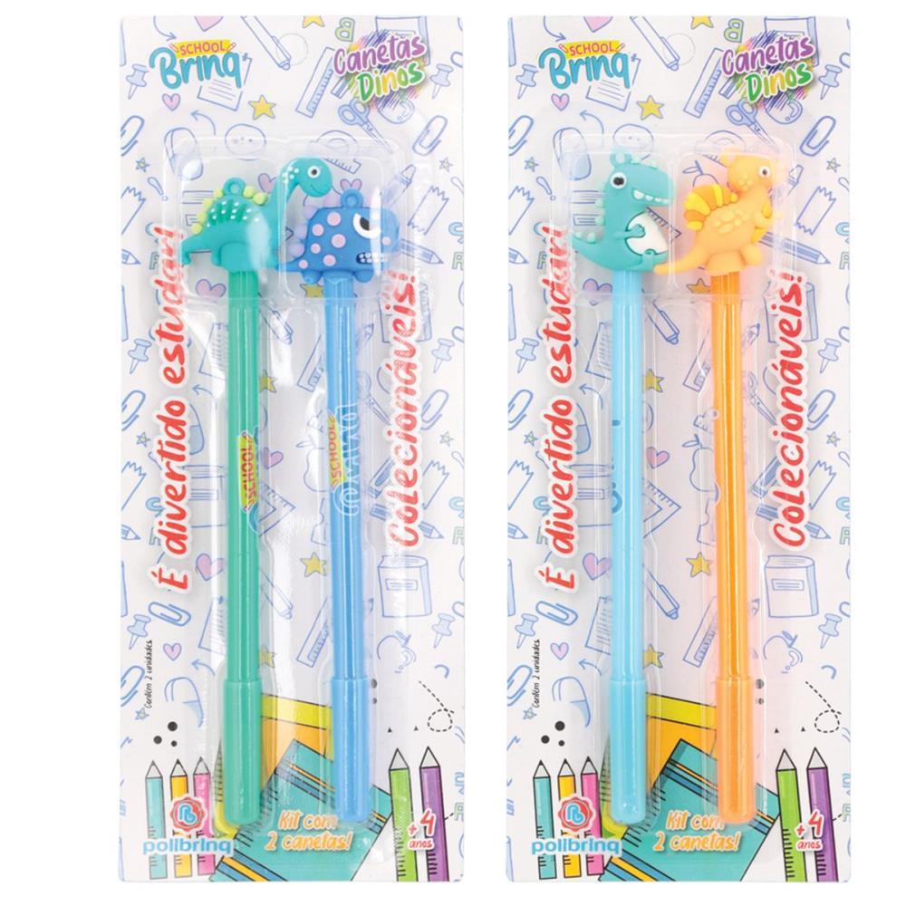 ransforme sua escrita em uma aventura pre-historica com o Kit de 2 Canetas Esferograficas Divertidas Dinos! Cada caneta traz um dinossauro adoravel em seu topo, tornando a escrita ainda mais divertida e criativa!