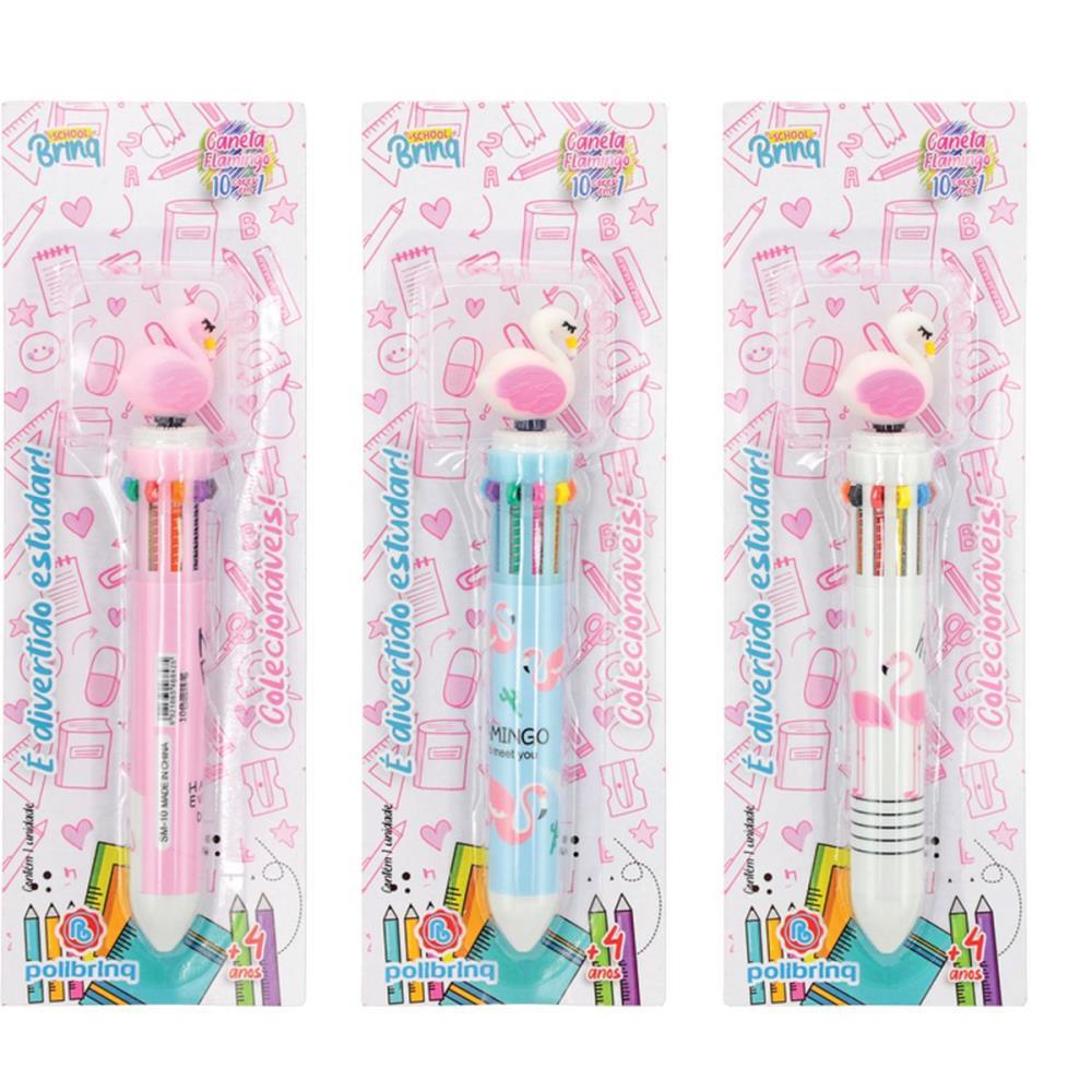 A Caneta Multicolorida Flamingos e perfeita para quem busca praticidade e estilo. Com 10 cores em um unico corpo e um flamingo fofo na ponta, e ideal para dar um toque especial as suas atividades diarias.