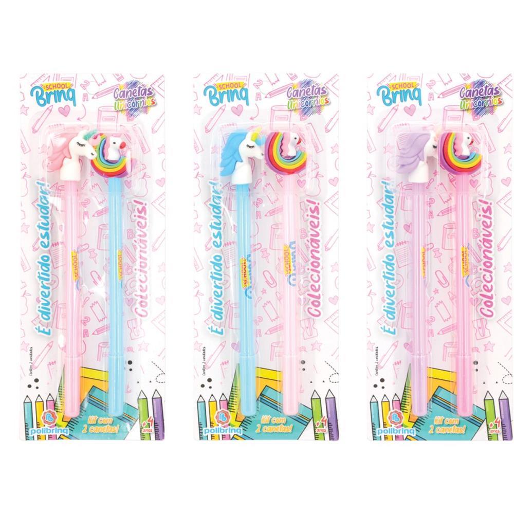 O Kit Caneta Esferografica Divertida Unicornio vem com duas canetas encantadoras em forma de unicornio, tornando suas anotacoes mais divertidas e magicas!