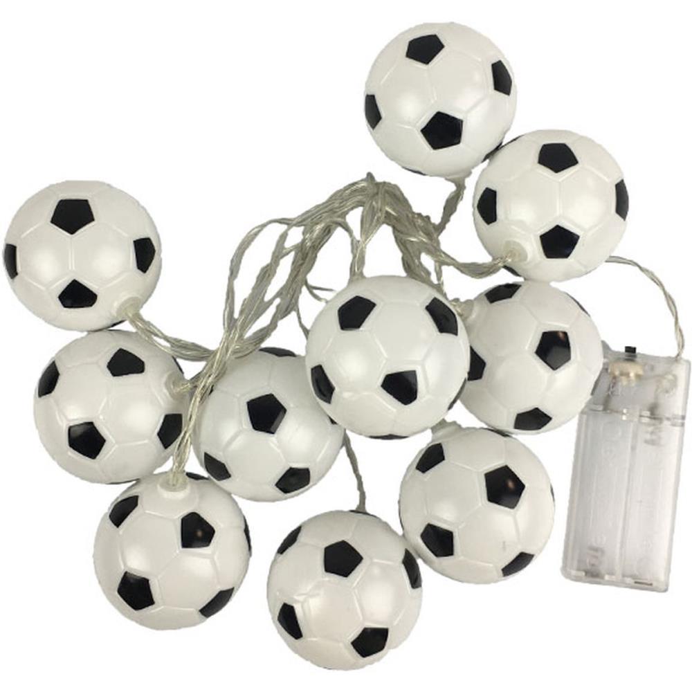 Cordao de LED decorativo com bolas de futebol, perfeito para iluminar e decorar ambientes com tematica esportiva. Com luz suave e visual divertido, e ideal para complementar decoracoes de festas, aniversarios, eventos e espacos dedicados ao futebol.