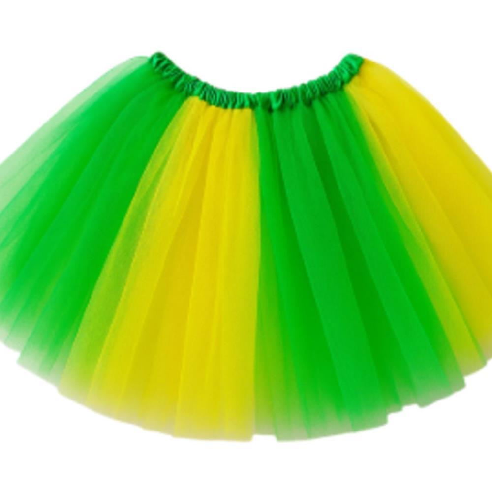 A saia de tule mesclada Brasil e o acessorio ideal para quem busca um visual leve, volumoso e cheio de estilo. Com a combinacao das cores verde e amarelo, ela cria um efeito vibrante e divertido, perfeito para festas, eventos esportivos, Carnaval e comemoracoes tematicas. Seu acabamento em tule proporciona movimento e um caimento encantador, valorizando qualquer look com um toque alegre e descontraido. Facil de vestir e confortavel, atende diferentes publicos, sendo uma otima opcao para compor fantasias ou producoes tematicas.