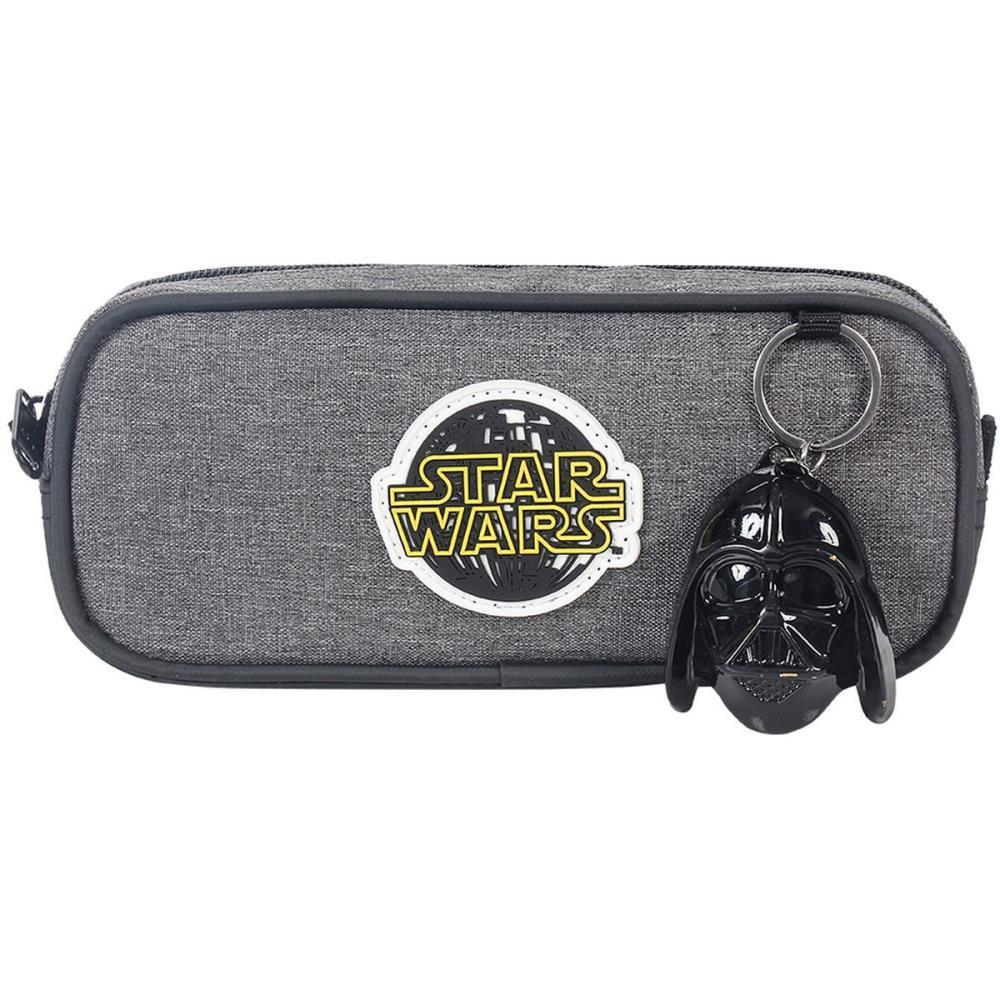 Estojo Star Warsduas divisoes. O estojo e confeccionado em poliester de alta densidade mesclado e detalhes em soft pcv . Possui etiqueta emborachada da logomarca Star Wars e acompanha de brinde um lindo chaveiro em metal com a mascara Darth Vader. Produto Licenciado Original