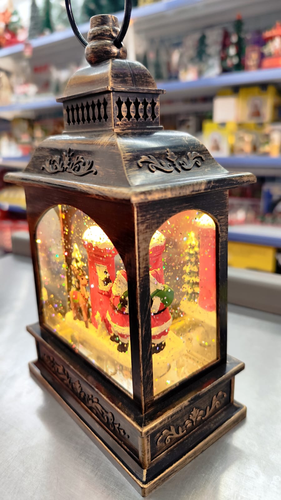 Lanterna Decorativa Papai Noel Com Saco De Presentes, Rena E Pinheiro Com Água E Iluminação De Led Claro