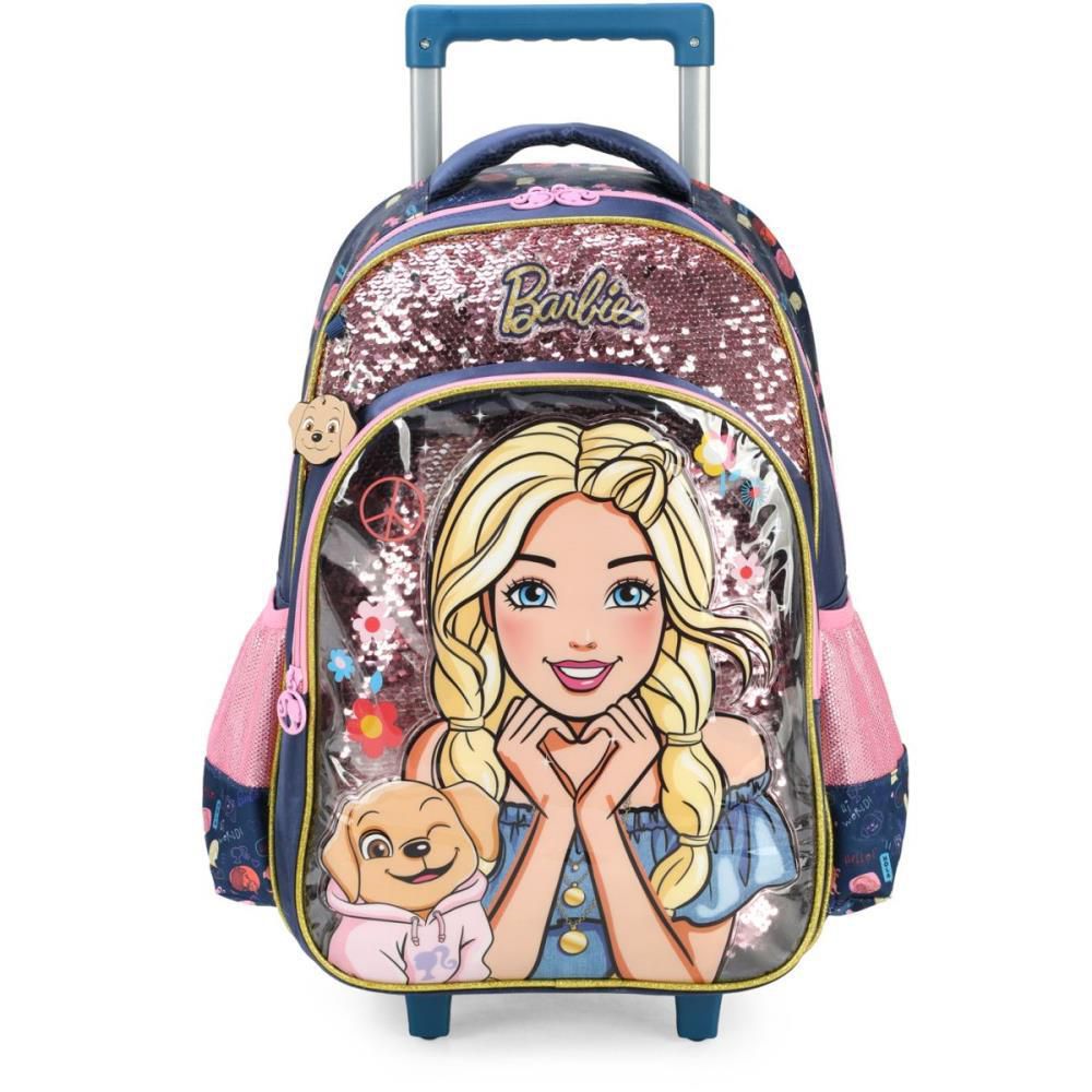Com a mochila de rodinhas “Barbie” ir para a escola nunca foi tao divertido. A mochila possui um compartimento amplo e dois bolsos laterais de mesh com poliester para que voce possa levar seus objetos com toda a seguranca e autonomia necessaria, alem de um bolso frontal e detalhes em paete deixando ainda mais divertido levar os materiais. Com puxadores e chaveiro personalizados, e carrinho em metal. A mochila possui estampas modernas e divertidas, ir para a escola nunca foi tao legal! Tamanho: 17 Polegadas