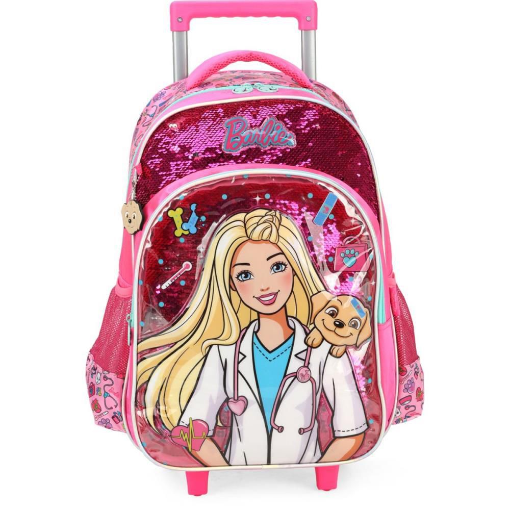 Com a mochila de rodinhas “Barbie” ir para a escola nunca foi tao divertido. A mochila possui um compartimento amplo e dois bolsos laterais de mesh com poliester para que voce possa levar seus objetos com toda a seguranca e autonomia necessaria, alem de um bolso frontal e detalhes em paete deixando ainda mais divertido levar os materiais. Com puxadores e chaveiro personalizados, e carrinho em metal. A mochila possui estampas modernas e divertidas, ir para a escola nunca foi tao legal! Tamanho: 17 Polegadas