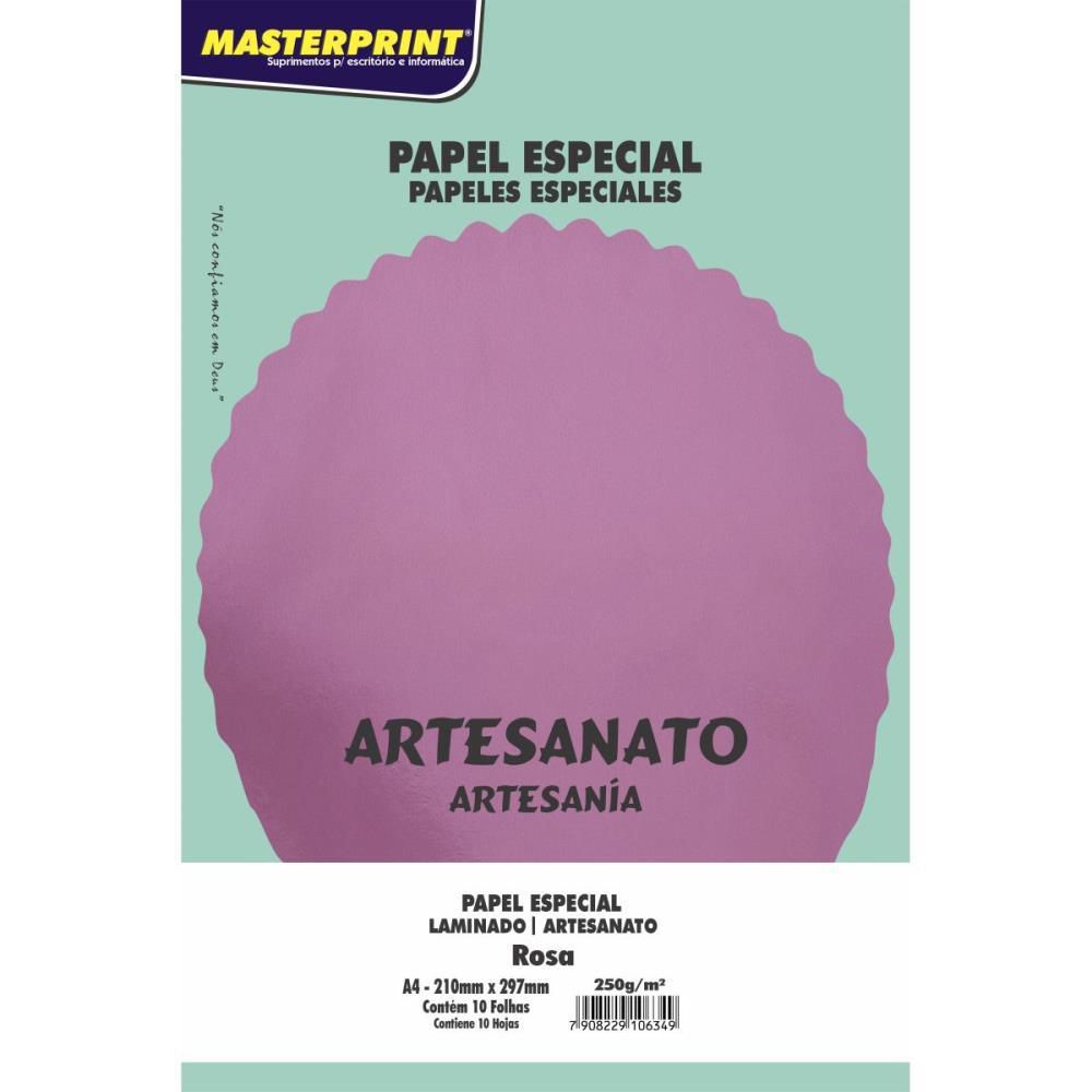 PAPEL ROSA LAMINADO PARA ARTESANATO 250gm COM 10 FOLHAS