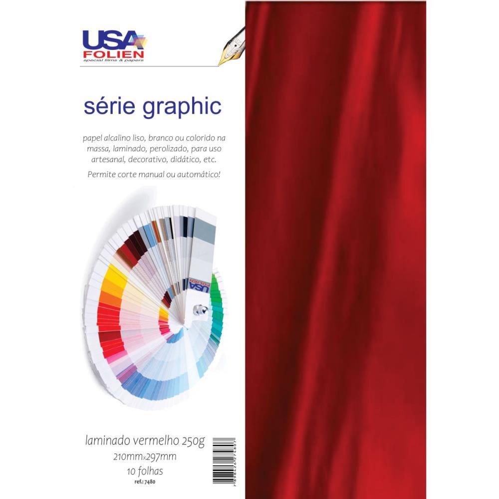 Laminado metalizado verde escuro 250g super brilhante. Permite dobras, colagem, corte manual e automatico.