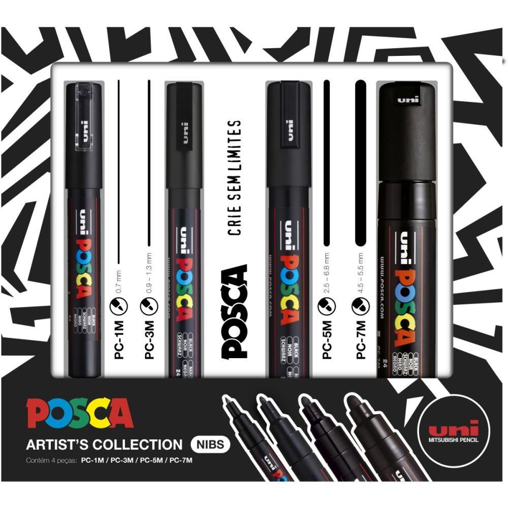 Pincel Marcador Artesanato Posca Preta KIT C/4 Pontas