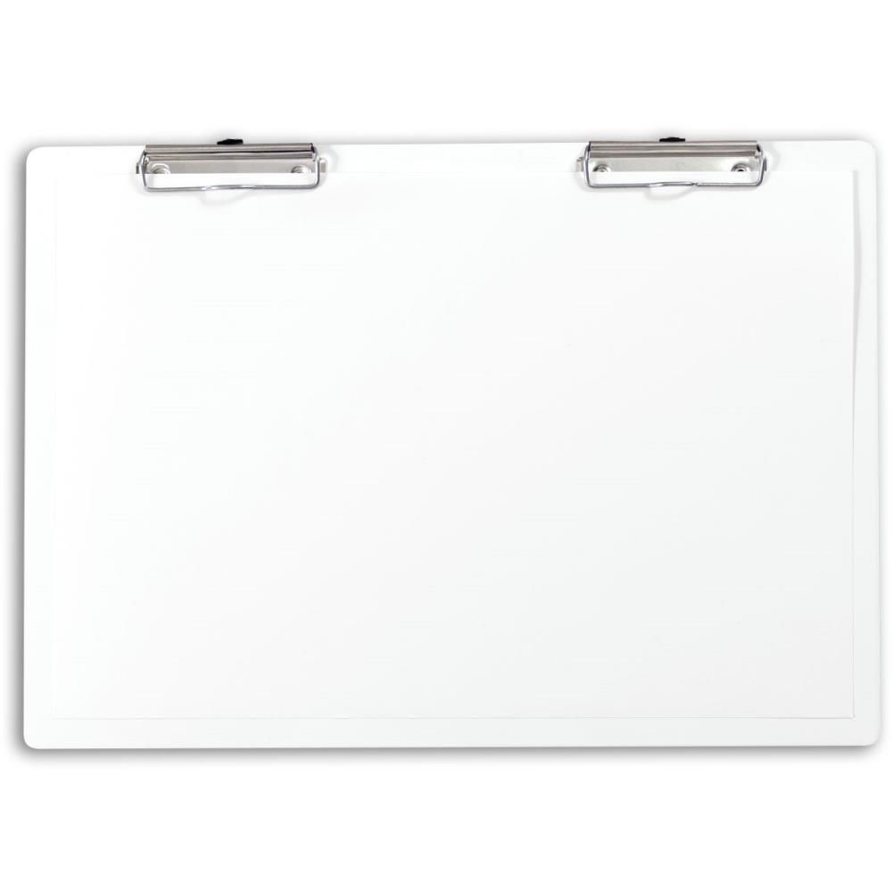 Prancheta para desenho com prendedores de papel. Acabamento em UV na cor branca permitindo o uso de marcadores para quadro branco. Pranchetas para papel a A4 e A3.