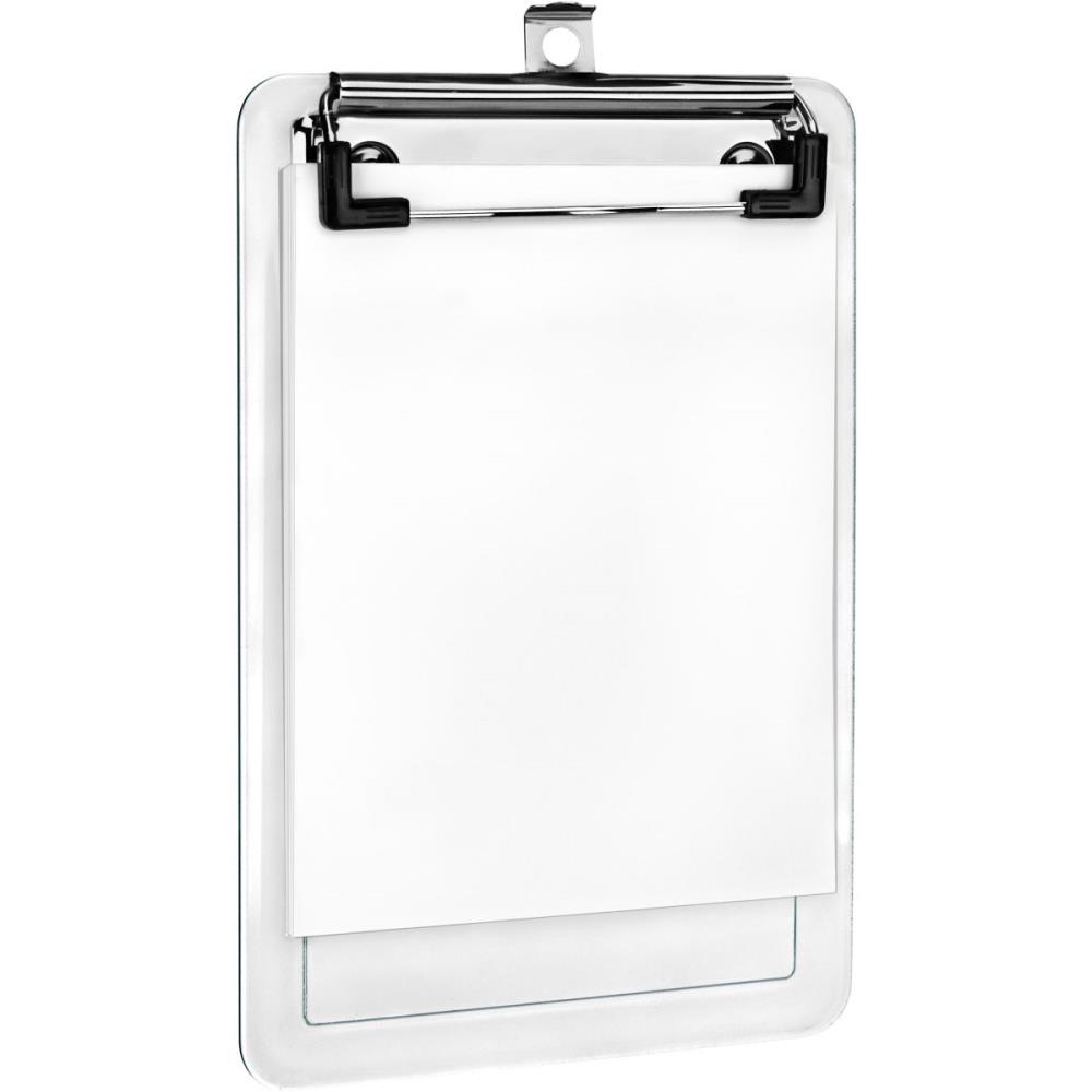 Prancheta Slip, tamanho 12cm L x 18,5cm C. Cor cristal. Em plastico resistente, com prendedor tipo wire clip. Acompanha bloco de papel 50 folhas A6. Perfeita para ter a mao para anotacoes a qualquer hora, em qualquer lugar. Na escola, treino, cozinha, em casa, no consultorio: versatil e util em diversos lugares.
