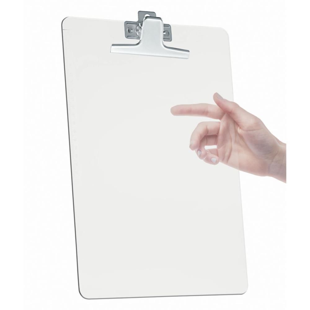 Feita em poliestireno e com prendedor de metal, a prancheta e muito resistente e oferece otimo acabamento e qualidade. Possui uma regua na lateral. E indicada para escritorios, controle de estoque, entre outros, pode ser usada em diferentes tipos de estabelecimentos. Cor: Cristal