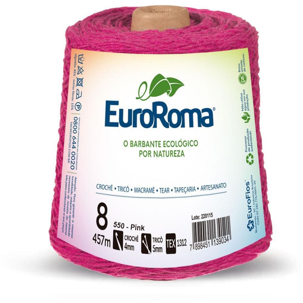 O barbante EuroRoma 4/8 é desenvolvido através de matéria-prima reciclada, voltado para o artesanato. Produzido de forma sustentável, este barbante apresenta qualidade, beleza e versatilidade. O talento e a criatividade do artesão se transformam em peças exclusivas com o barbante EuroRoma 4/8 na cor Pink. Conhecido também como barbante nº8, tem como sugestão a utilização da agulha nº 4 mm para o crochê e agulha nº 5 mm para o tricô.
