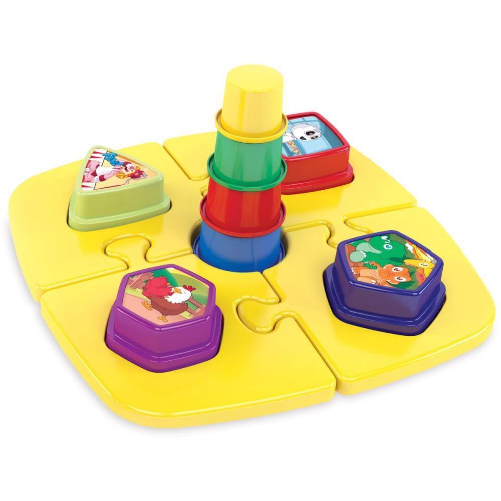 Destinado a criancas com mais de 18 meses. Brinquedo atrativo devido ao formato de cadeirinha. Possui quebra cabeca pedagogico e torre de pecas coloridas permitindo muitas brincadeiras.