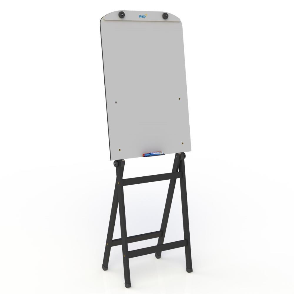 TELA em MDF 90×60 cm pintado em UV branco para uso com marcador, com porta caneta e suporte para blocos.