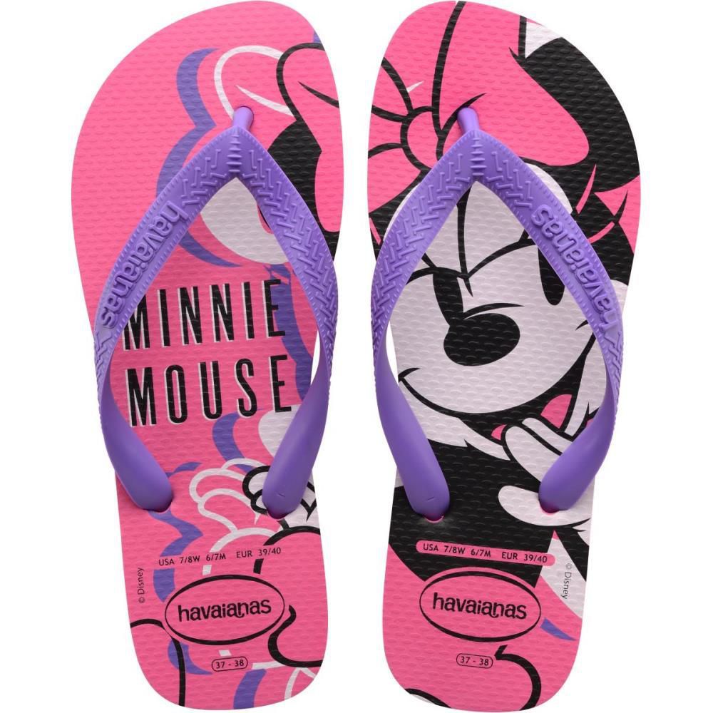 Homenageando o Mickey e a Minnie, as Havaianas Top Disney levam irreverencia aos seus pes. As estampas mostram os personagens em diversas poses e com varias expressoes em uma cartela de cores divertida.