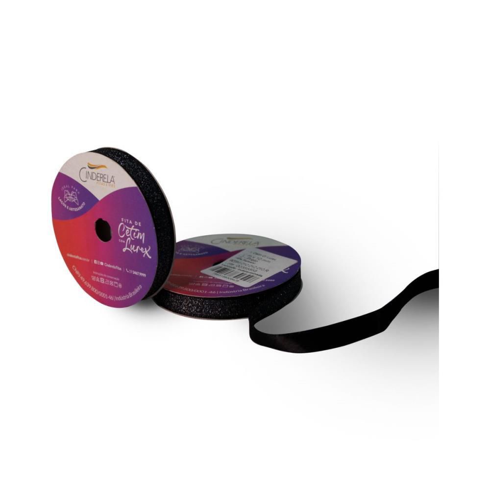 Fita De Cetim 10 Mm X 10 M Preto Com Glitter - Fitas Cinderela