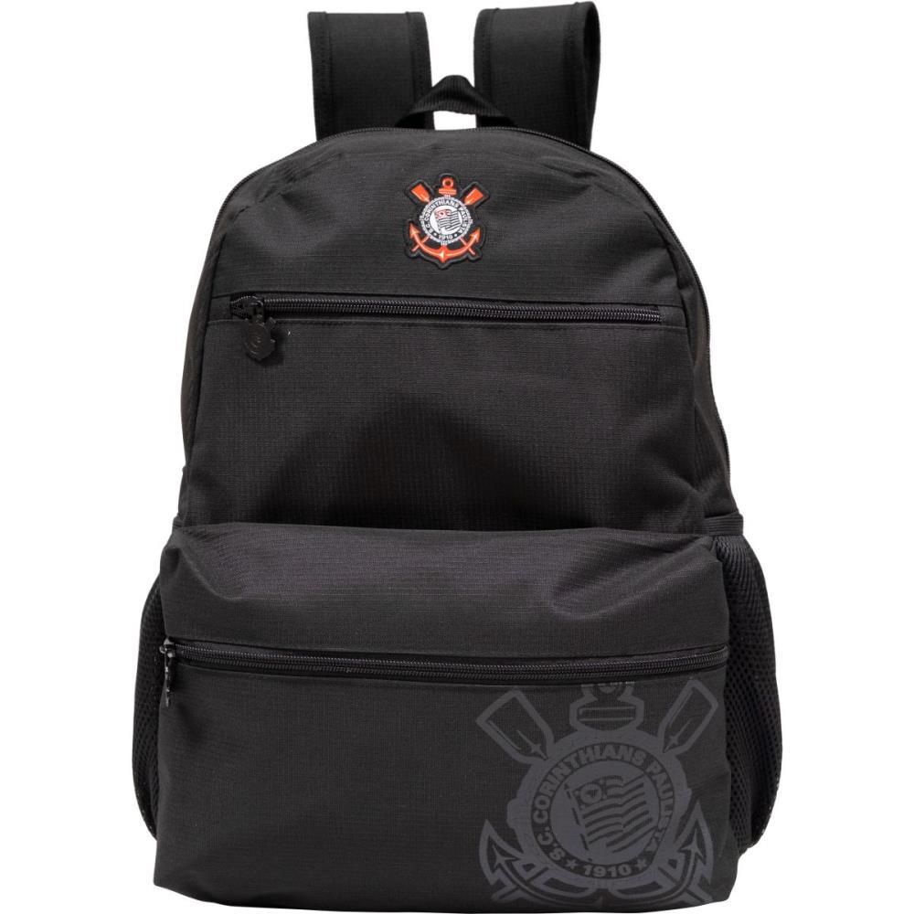 Mochila Esportiva Corinthians 01 - Produzida em poliester resistente com aplicacao do logo em patch, possui compartimento principal amplo, 2 bolsos frontais com ziper e aplicacao de arte silkada, 2 bolsos latertais . Fechamento em ziper com puxadores personalizados. Costas com logo bordado.