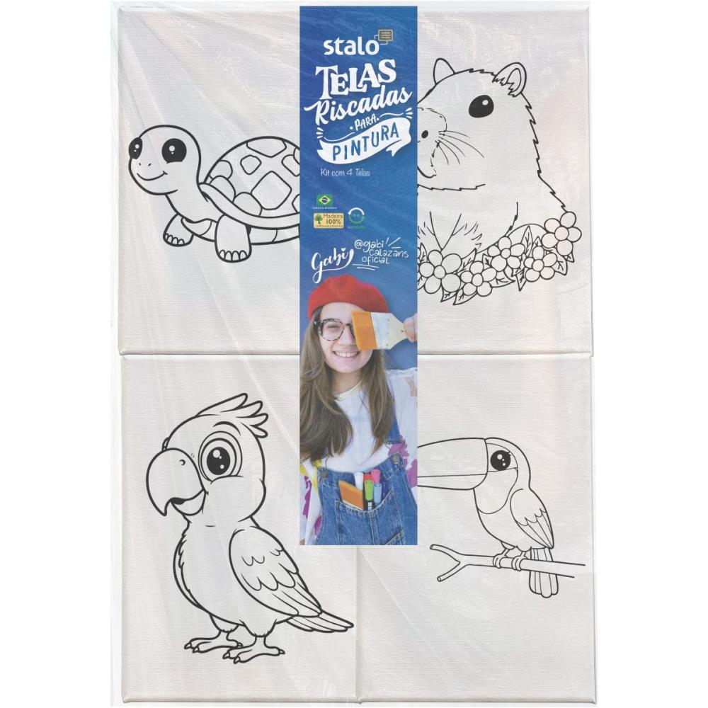 - Chassi em madeira pinus ou MDF. - Grampo fixado na parte traseira da tela. - Tecido 100% algodao com 265 grsm. - Brancura de 100% de dioxido de Titanio, sem adicao de clareadores. - Tela com espessura de 18 mm. - Brasil Cod. 5156: Tartaruga, Capivara, Papagaio, Tucano