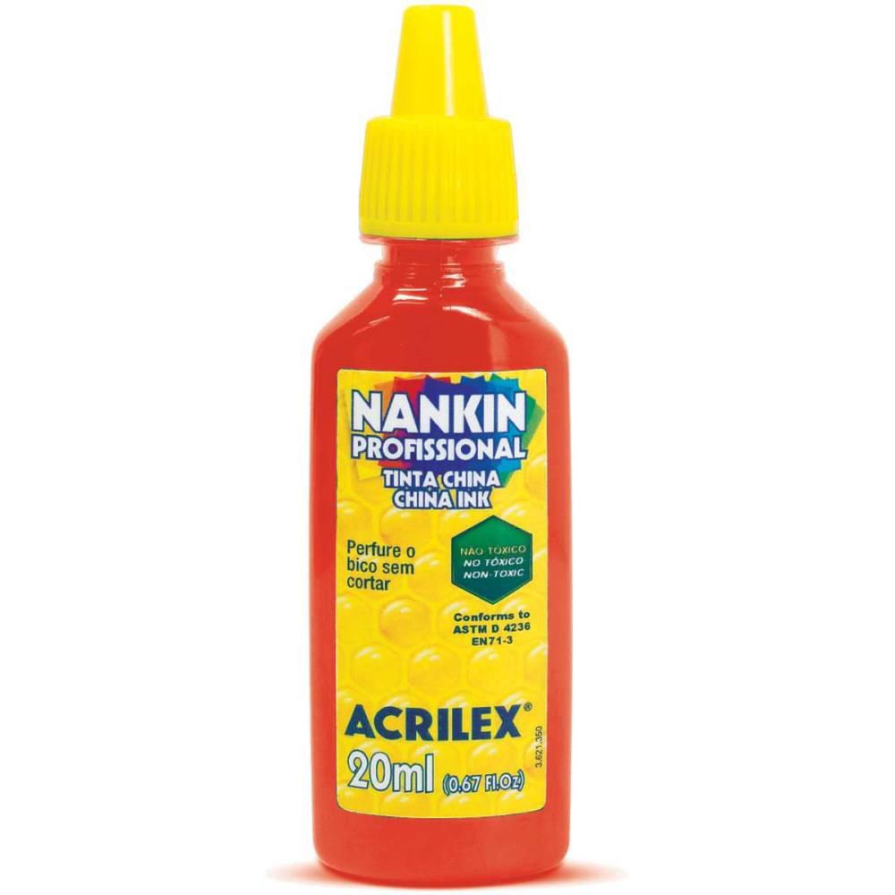 A Tinta Nankin Acrilex foi desenvolvida para trabalhos artísticos e escolares. Sua nova embalagem com bico aplicador facilita o seu manuseio. Pode ser aplicada com pincel, bico de pena ou caneta nankin sobre papel, cartolina e superfícies não esmalta das. A Tinta Nankin Acrilex é solúvel em água. Não tóxico. Embalagem: 20 ml